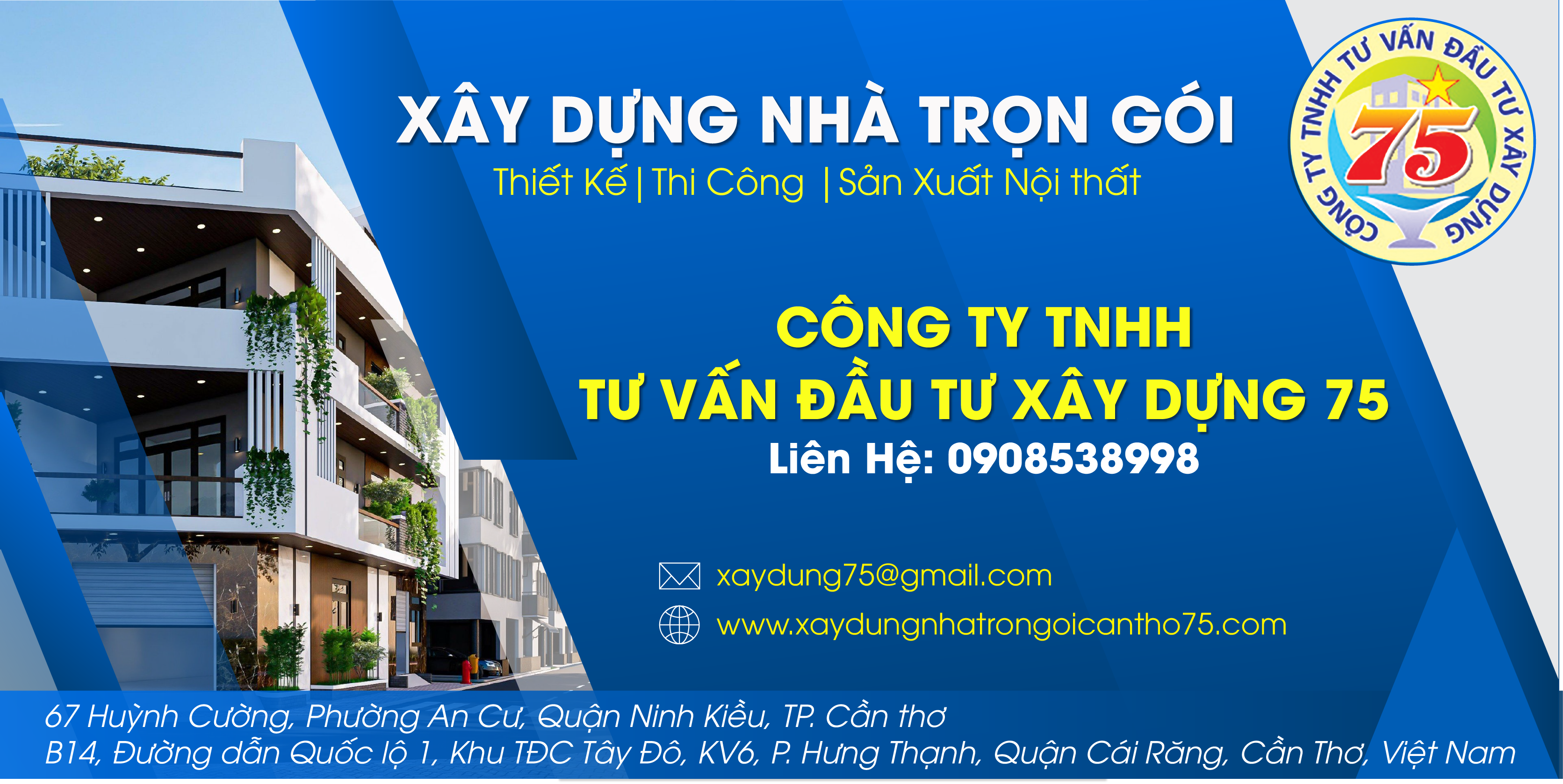 Công ty TNHH Tư vấn Đầu tư Xây dựng 75 chuyên hoạt động trong lĩnh vực Thiết kế, Thi công các công trình kiến trúc xây dựng, nội thất tại Thành Phố Cần Thơ và các tỉnh Miền Tây. Mang trong mình sứ mệnh kiến tạo không gian sống. Xây dựng 75 luôn đề cao giá trị công năng sử dụng theo thói quen của từng khách hàng nhưng vẫn giàu tính thẩm mỹ. Với đội ngũ Kiến trúc sư, Kỹ sư trẻ, năng động, sáng tạo. Lãnh đạo công ty dày dặn kinh nghiệm. Xây dựng 75 không ngừng học hỏi sáng tạo để cho ra những công trình độc đáo, hiện đại mang lại cảm giác thoải mái tiện nghi cho người sử dụng.